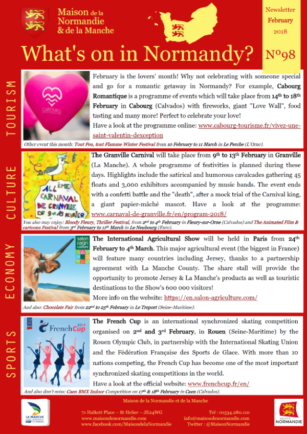 We are pleased to send you our February 2018 Newsletter, to give you information about the events in Normandy!