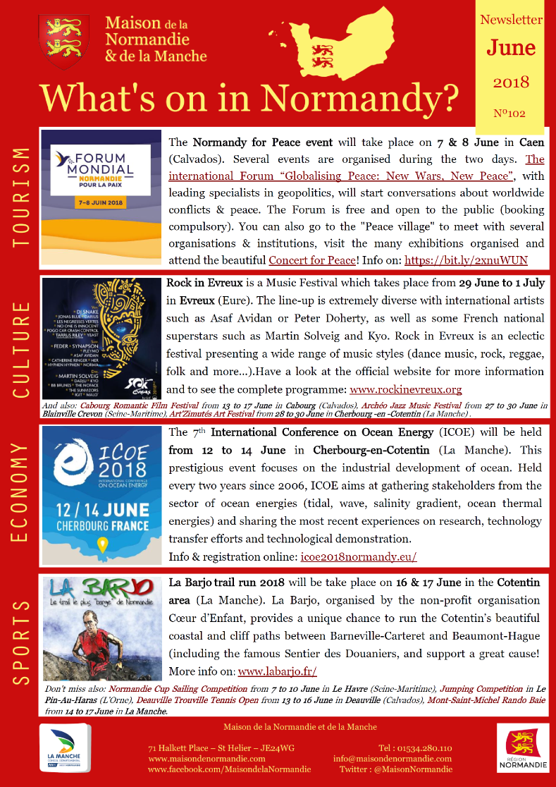 You are currently part of the mailing list of Maison de la Normandie et de la Manche and therefore you receive our monthly e-newsletters “What’s on in Normandy” as well as, occasionally, invitation to our events or information about our activities.