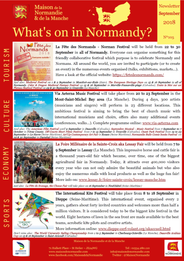 We are pleased to send you our September 2018 Newsletter, to give you information about the events in Normandy!