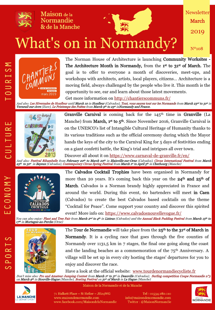 We are pleased to send you our March 2019 Newsletter, to give you information about the events in Normandy!