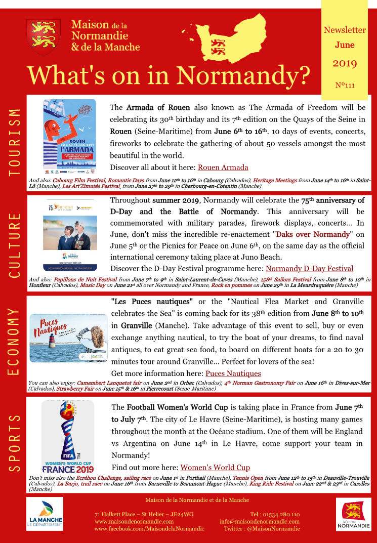 We are pleased to send you our June 2019 Newsletter, to give you information about the events in Normandy!