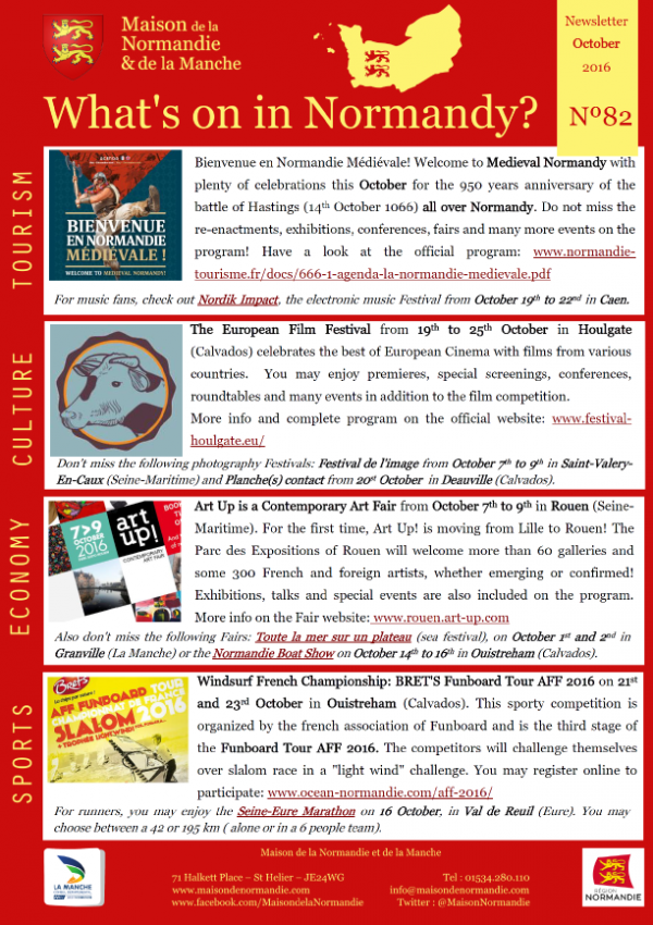 We are pleased to send you our October 2016 Newsletter, to give you information about the events in Normandy!