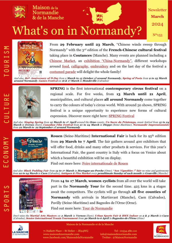 If you are going to Normandy this March, click on the image on the left or right here to discover the main events happening in our beautiful region.