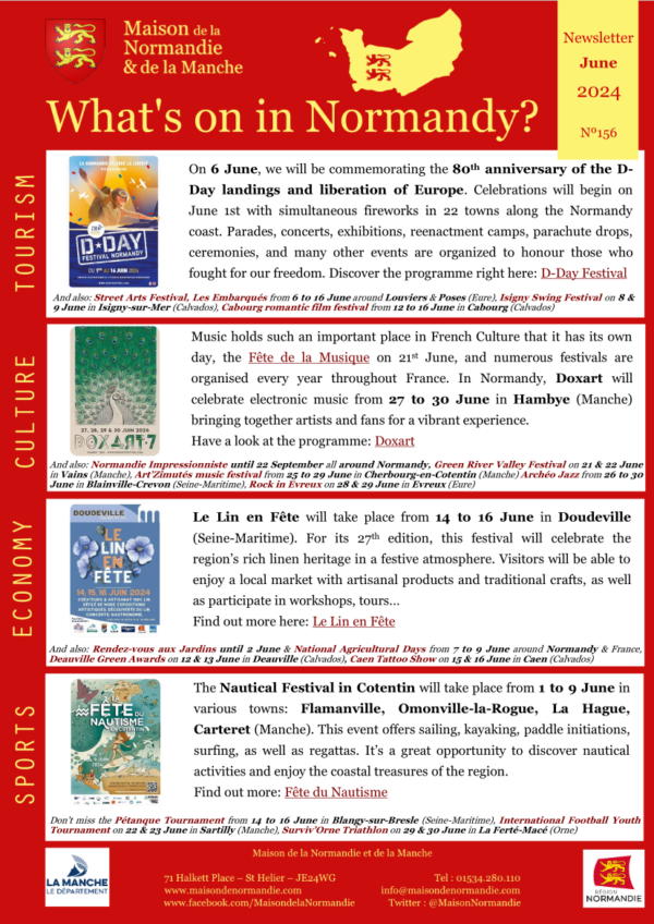 We are very happy to share with you our monthly newsletter giving you ideas on what you can do in Normandy this upcoming June!