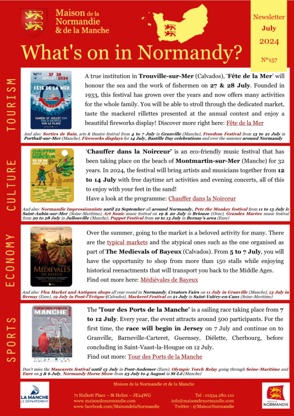 If you are going to Normandy this July, click on the image on the left or right here to discover the main events happening in our beautiful region.