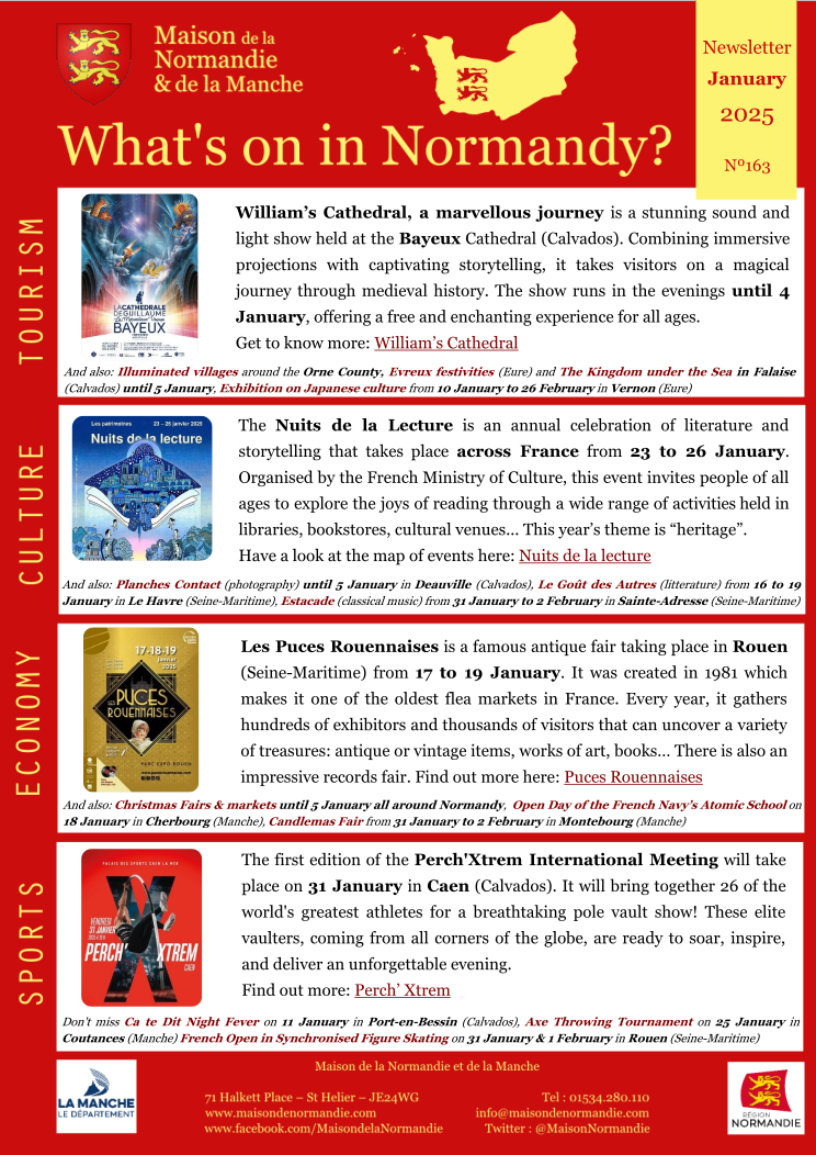 We are also happy to share our newsletter if you want to know what's happening in Normandy this January.