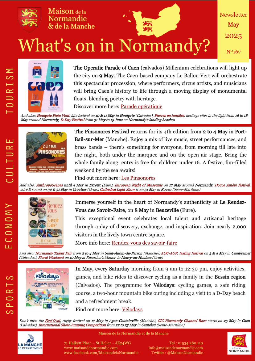 If you are going to Normandy this May, click on the image on the left or right here to discover the main events happening in our beautiful region.
