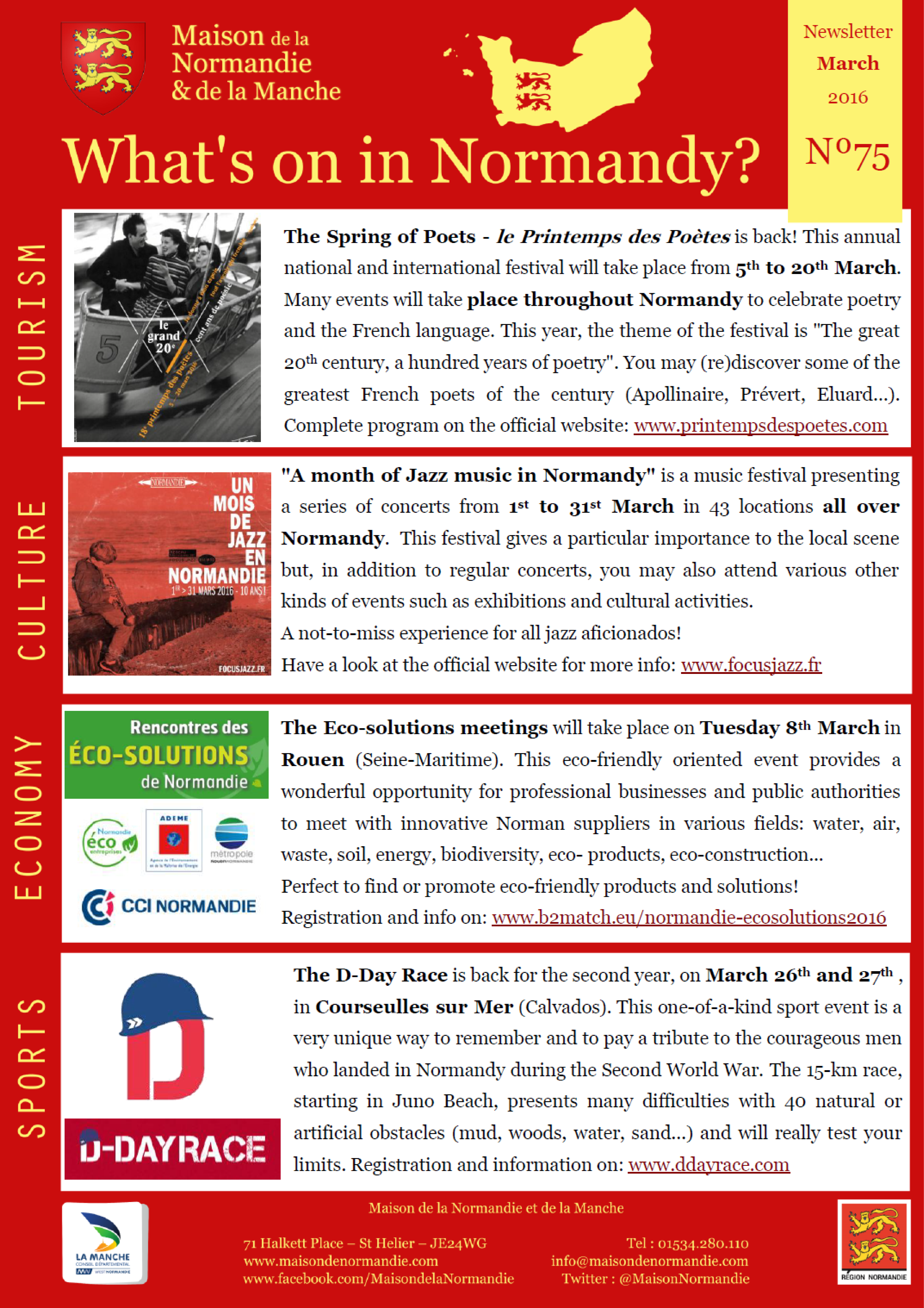 We are pleased to send you our March 2016 Newsletter, to give you information about the events in Normandy!