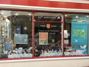 Our newest shop window displays highlight the missions of Maison de la Normandie et de la Manche celebrating its 25th anniversary in 2020 as well as the many Norman products available in our shop.