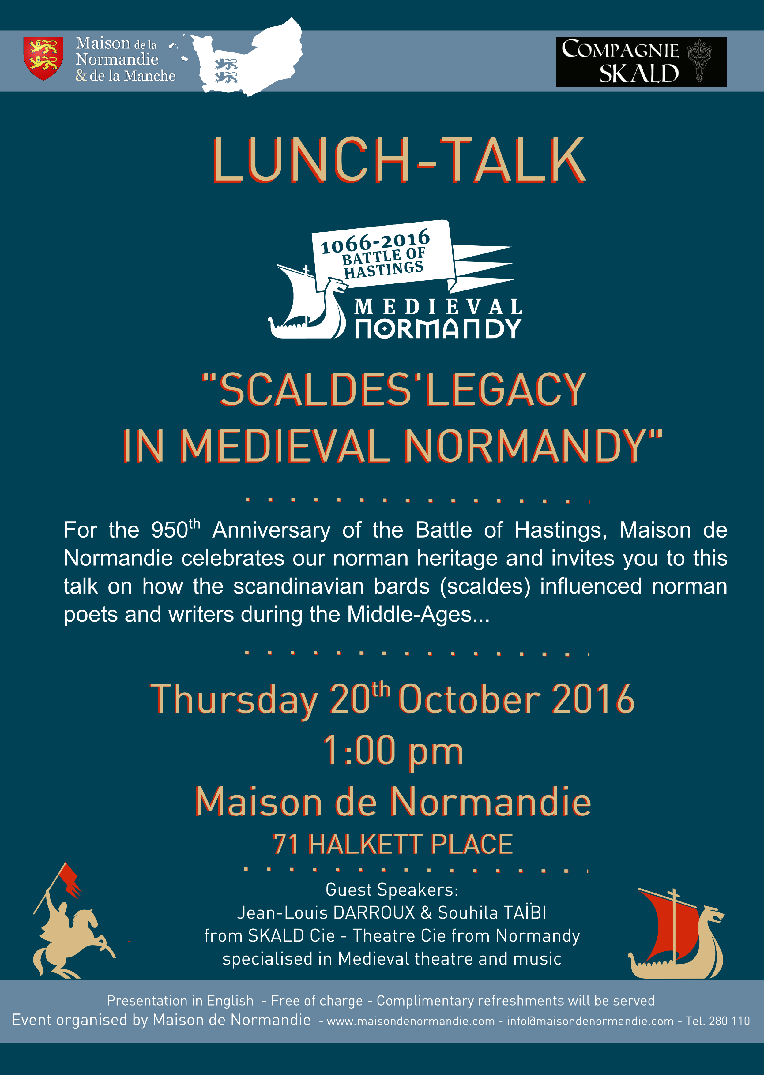 Special Guests speakers from SKALD theatre Cie are coming from Normandy to talk about the influence of the scaldes (the Scandinavian bards) in Medieval Normandy.