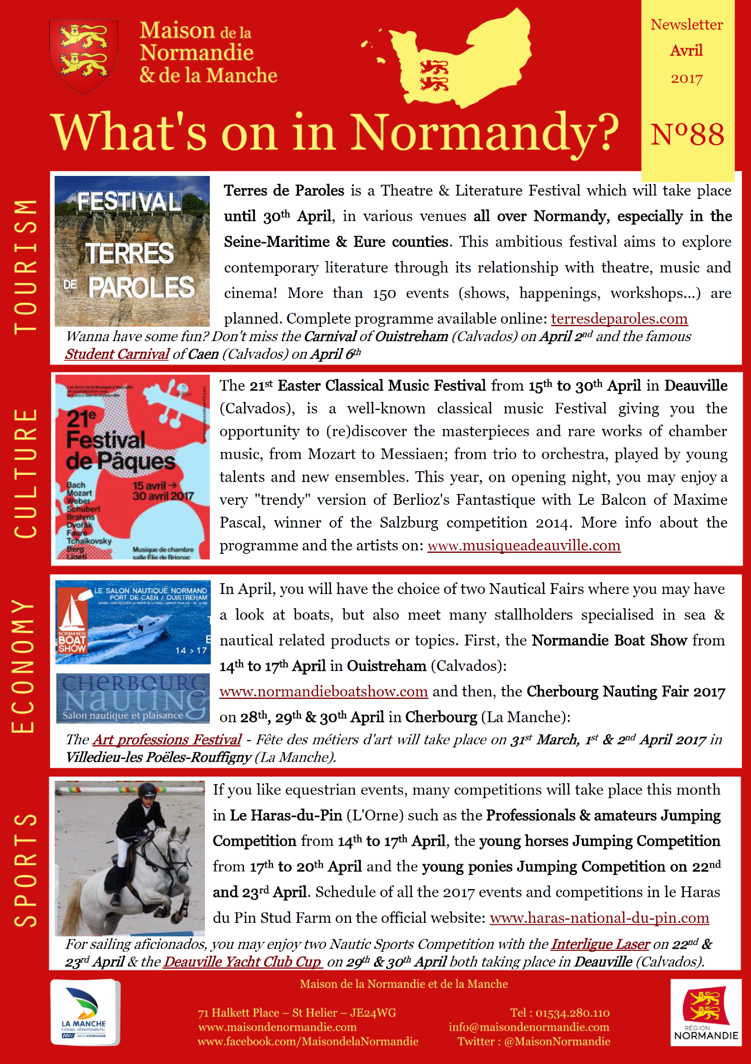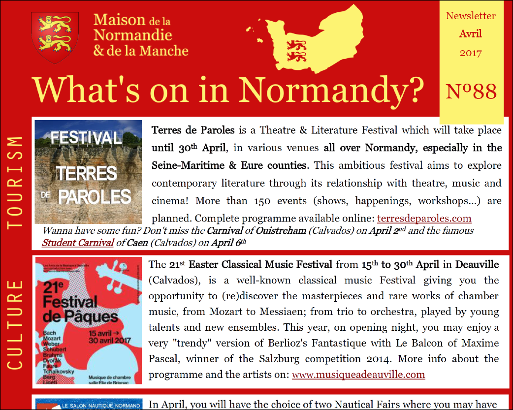 Have a look at our monthly Newsletter to see what’s on in Normandy!