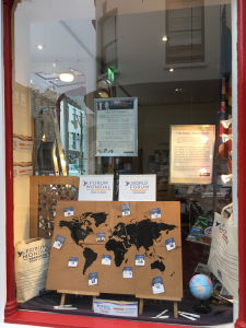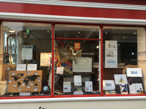 As part of its missions of cultural promotion, la Maison de la Normandie et de la Manche has decided to highlight in its shop windows, one of the main events of 2020 in Normandy; the World Forum Normandy for Peace.