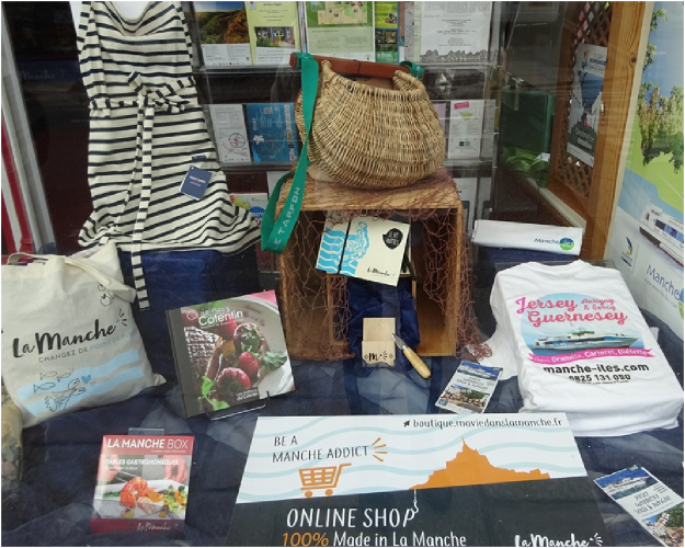 A selection of La Manche products are displayed in our windows (clothes, cider, gifts, books, umbrella…) and are available online (delivery to the Channel Islands).
