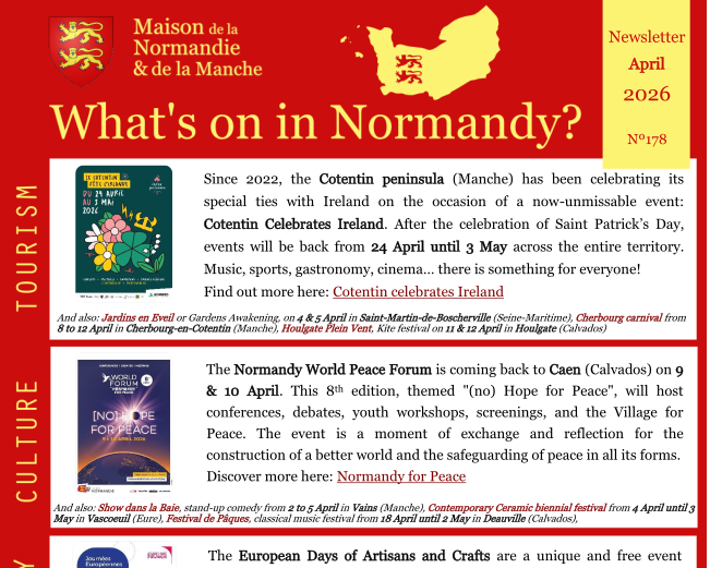Have a look at our monthly Newsletter to see what’s on in Normandy!