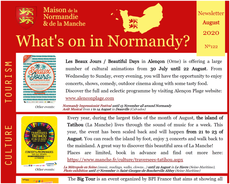 Have a look at our monthly Newsletter to see what’s on in Normandy!