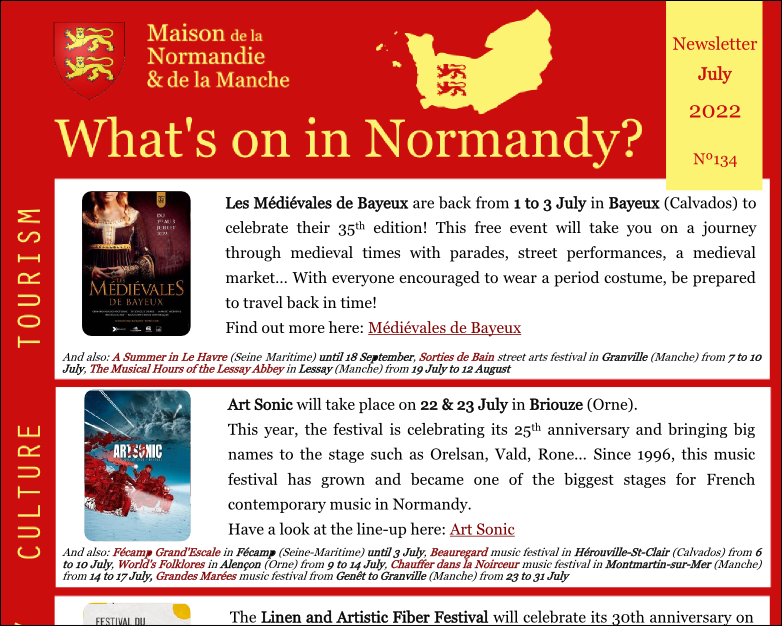 Have a look at our monthly Newsletter to see what’s on in Normandy!