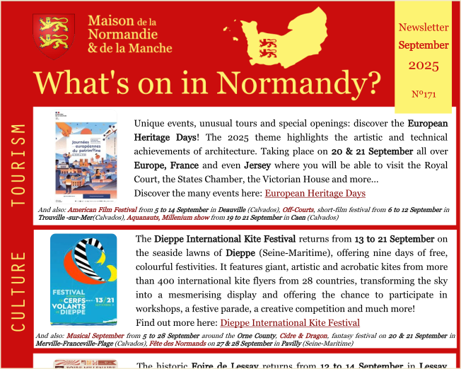 Have a look at our monthly Newsletter to see what’s on in Normandy!